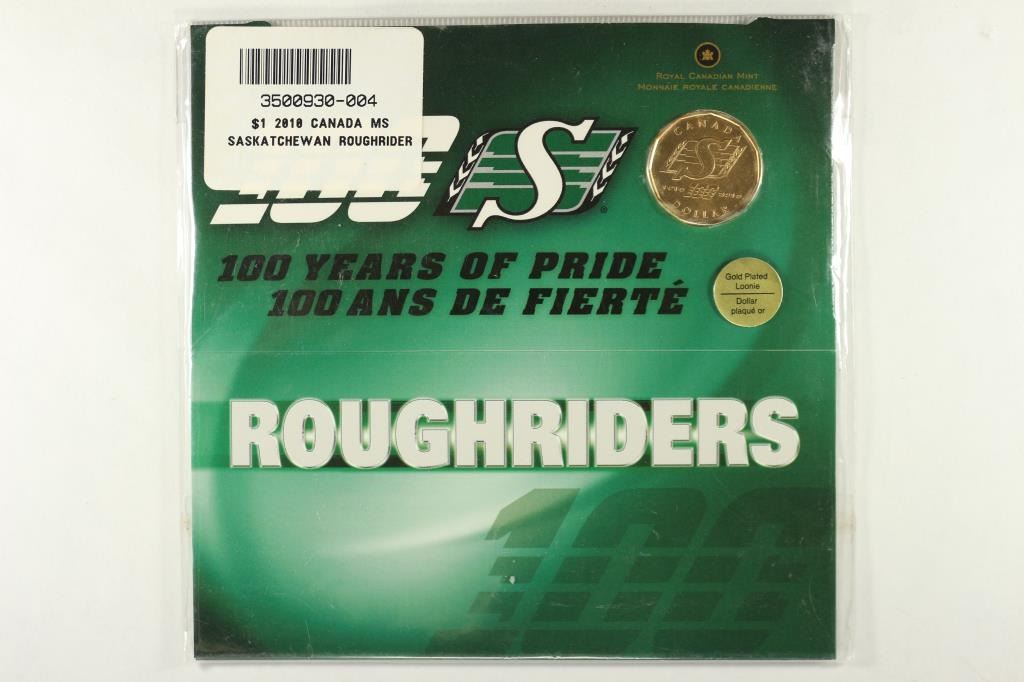 RIDERS GOLD PLATED $1 LOONIE, ORIGINAL ROYAL CANADIAN MINT PACKAGING