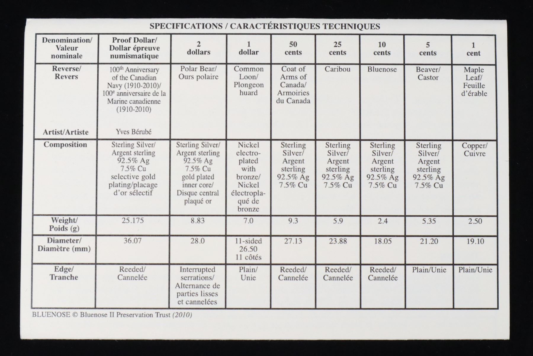 SILVER DOLLAR COMMEMORATES THE 100TH ANNIVERSARY OF THE CANADIAN NAVY (1910-201) IN ALL ORIGINAL PACKAGING WITH PAPERWORK. THIS SET FEATURES BOTH THE COMMEMORATIVE SILVER DOLLAR SELECTIVELY GOLD PLATED AND THE AUREATE DOLLAR DEPICTING THE COMMON LOON***ITEM(S) LOCATED IN LETHBRIDGE ALBERTA. FREE TRANSPORT TO OUR EDMONTON OFFICE, WORLDWIDE SHIPPING AVAILABLE