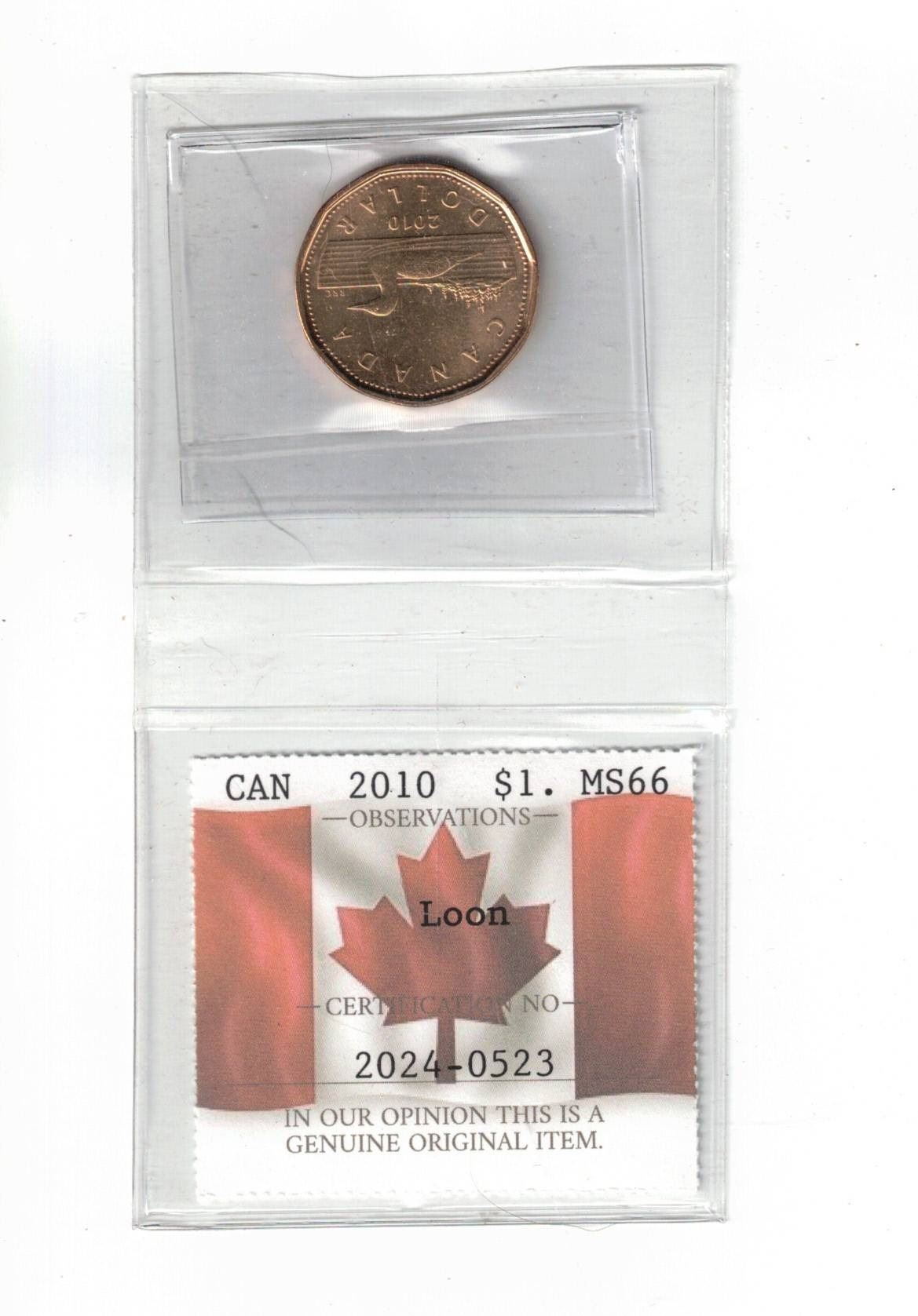 2010 Canada $1. Loon, Certified PCCS MS66, Professional Coin Certification System