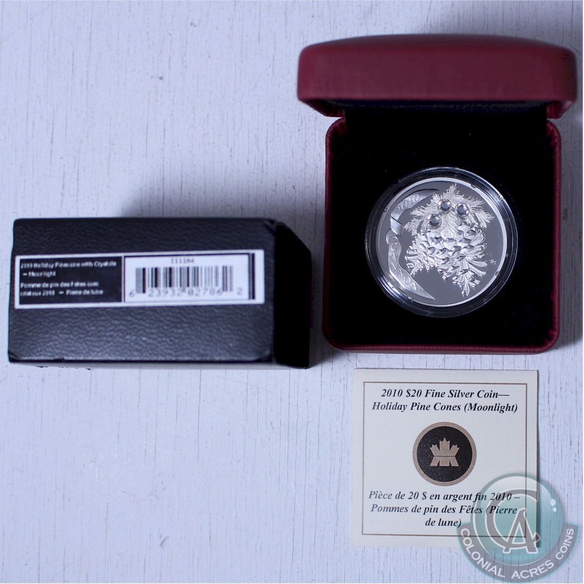 2010 Canada $20 Moonlight Crystal Pinecone Fine Silver Coin (outer cardboard sleeve has some light wear) (TAX Exempt)