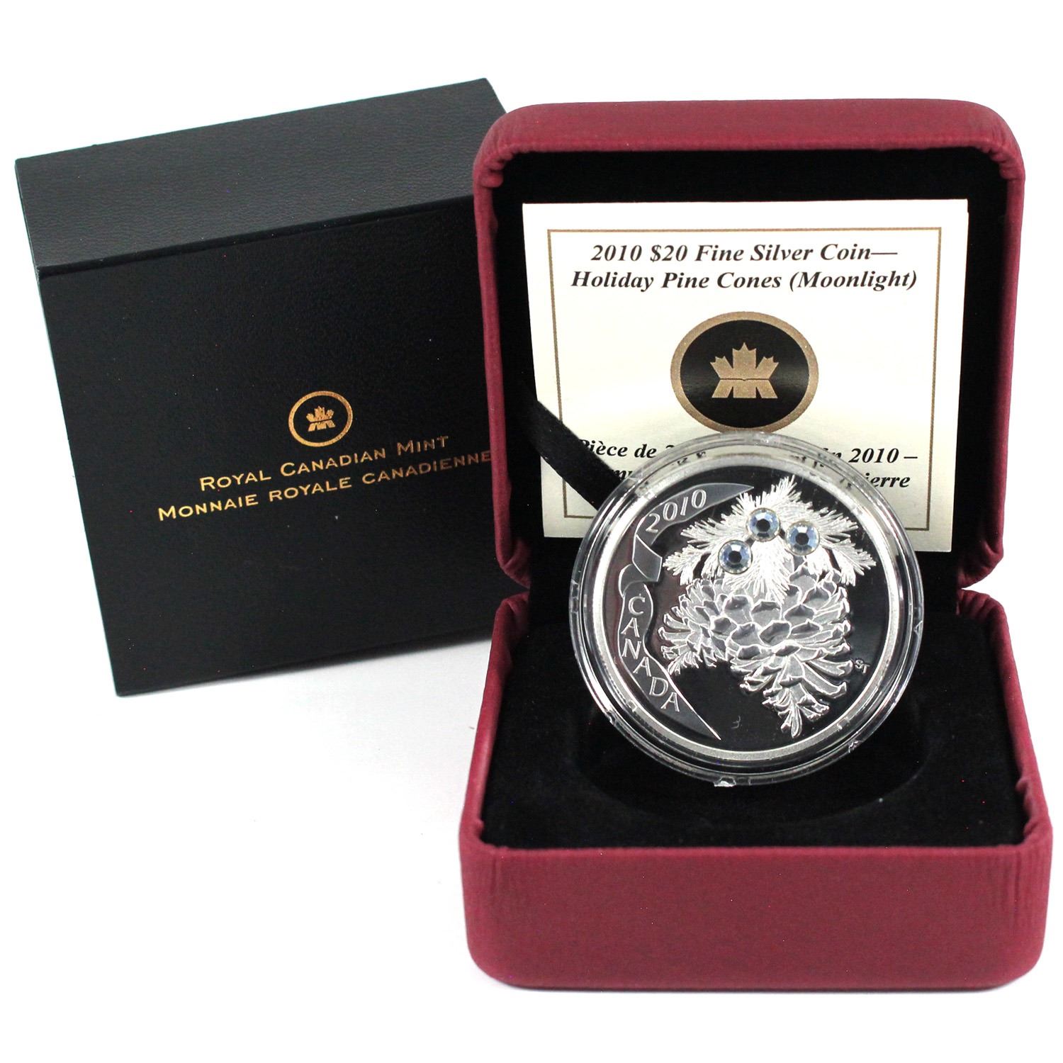 2010 Canada $20 Moonlight Crystal Pinecone Fine Silver Coin.