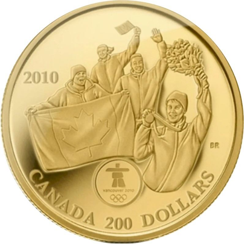 2010 Canada $200 First Olympic 22K Gold Medal on Home Soil 22K Gold.