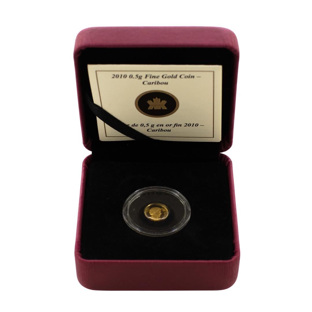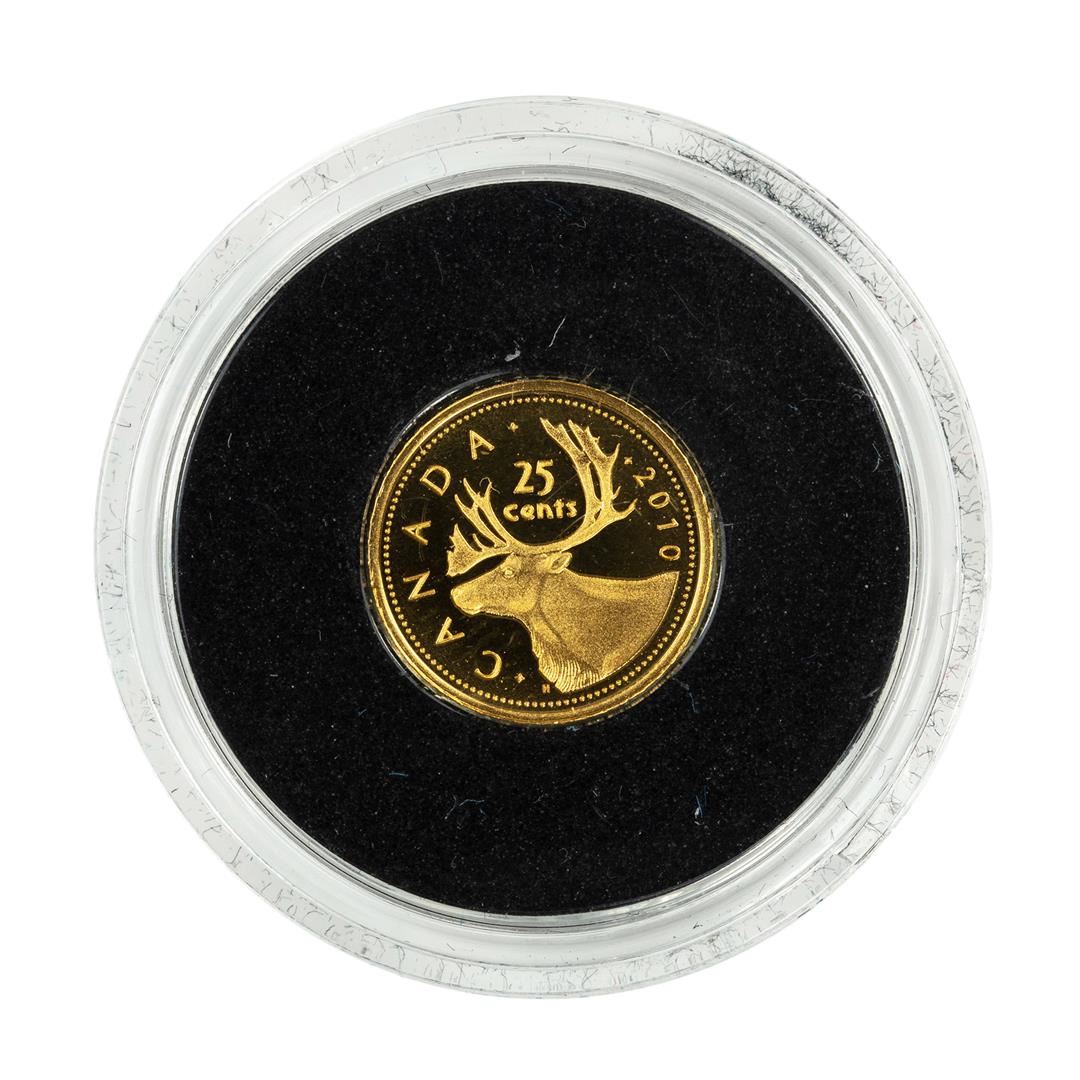 One 2010 Canada 25 Cents Caribou Gold Coin w/ Box & COA.