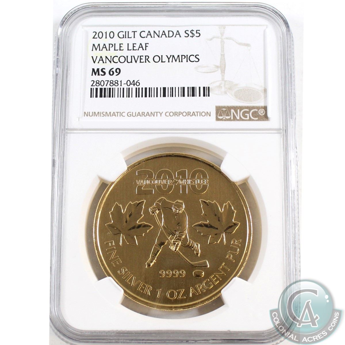 2010 Canada $5 Vancouver Olympics Gilt Maple Leaf NGC Certified MS-69 (TAX Exempt)