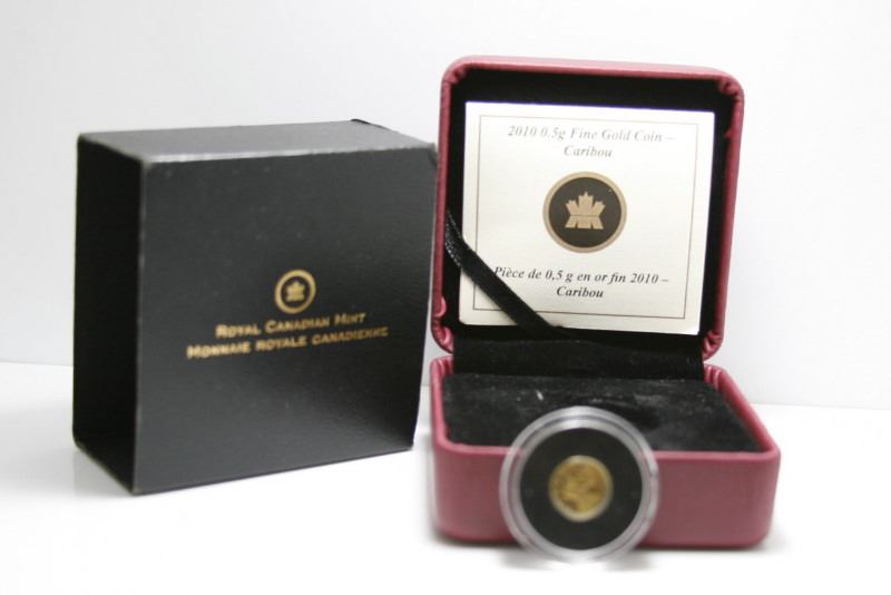 2010 Canadian .5gram 25-cent Fine Gold Coin - Caribou - In Original Box with COA