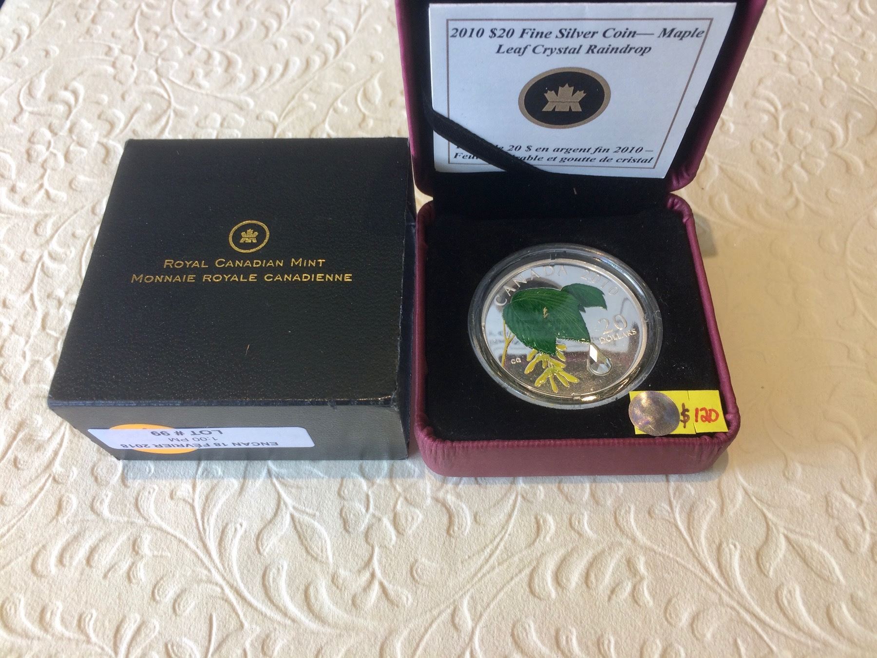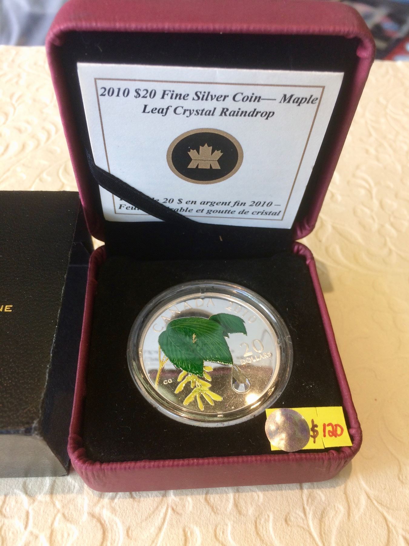 2010 Canada Fine Silver Coin-Maple Leaf Crystal Raindrop