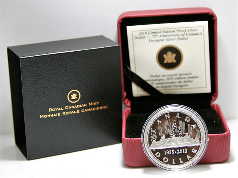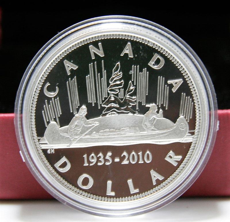 1935-2010 Canada Limited Edition Proof Sterling Silver $1 Dollar -75th Anniversary of Canada's Voyageur Silver Dollar w COA 92.5% silver & 7.5% copper 36.07 diameter, 25.175 grams