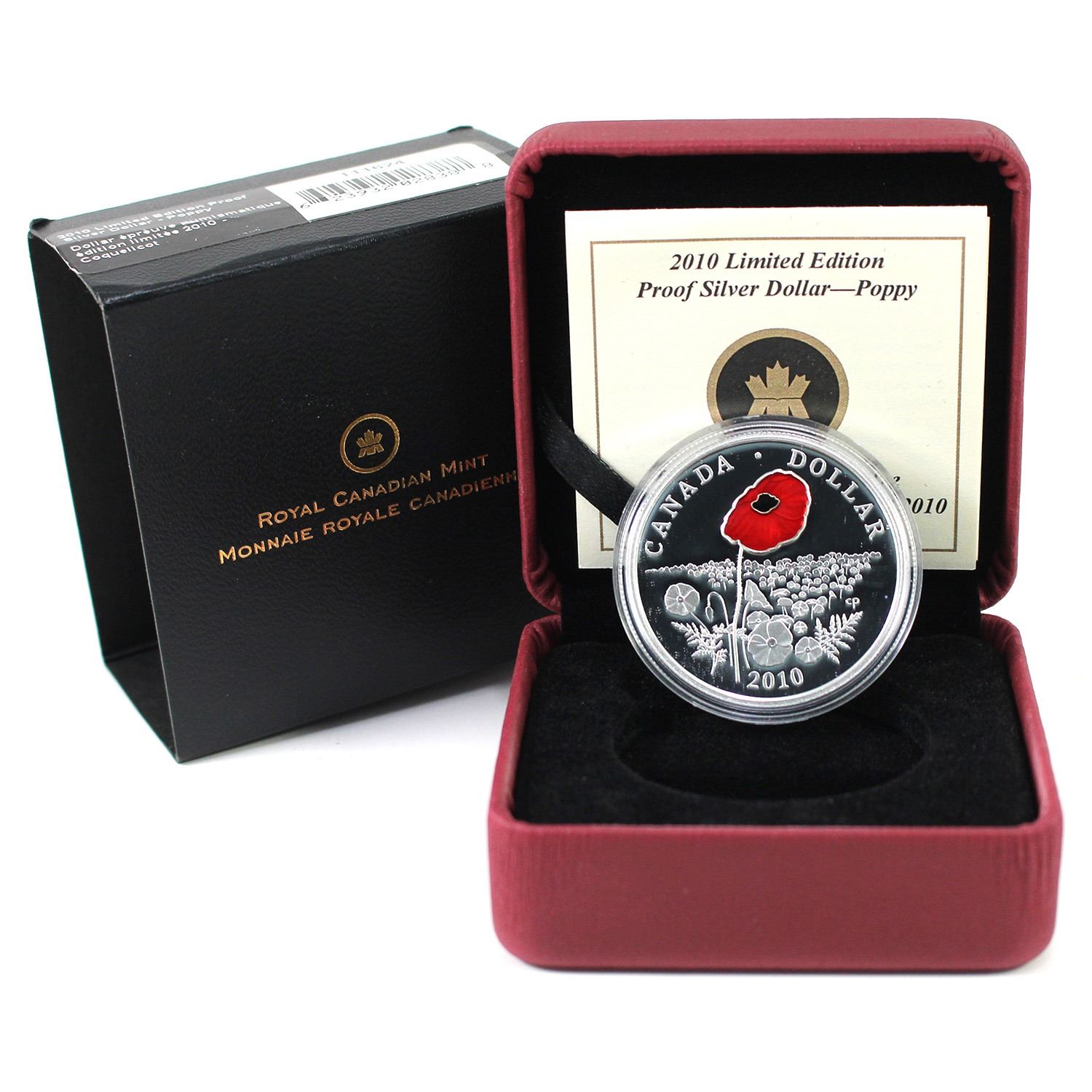 2010 Canada Limited Edition Proof Sterling Silver Coloured Poppy Dollar (Capsule lightly scratched)