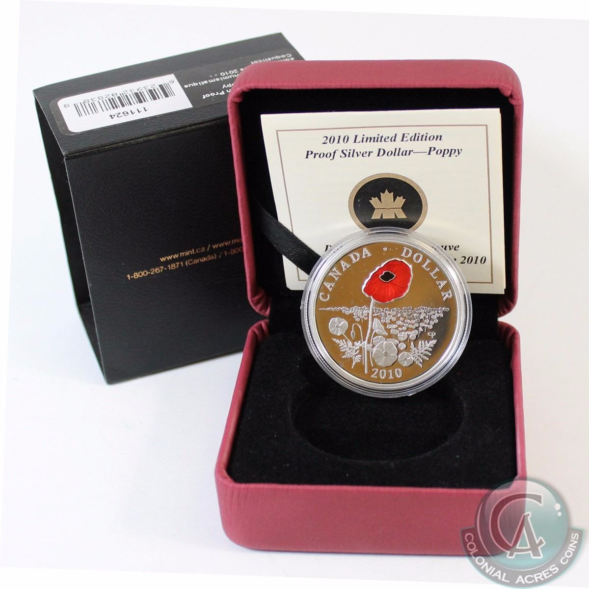 2010 Canada Limited Edition Proof Sterling Silver Poppy Dollar (Outer sleeve lightly worn) (TAX Exempt)