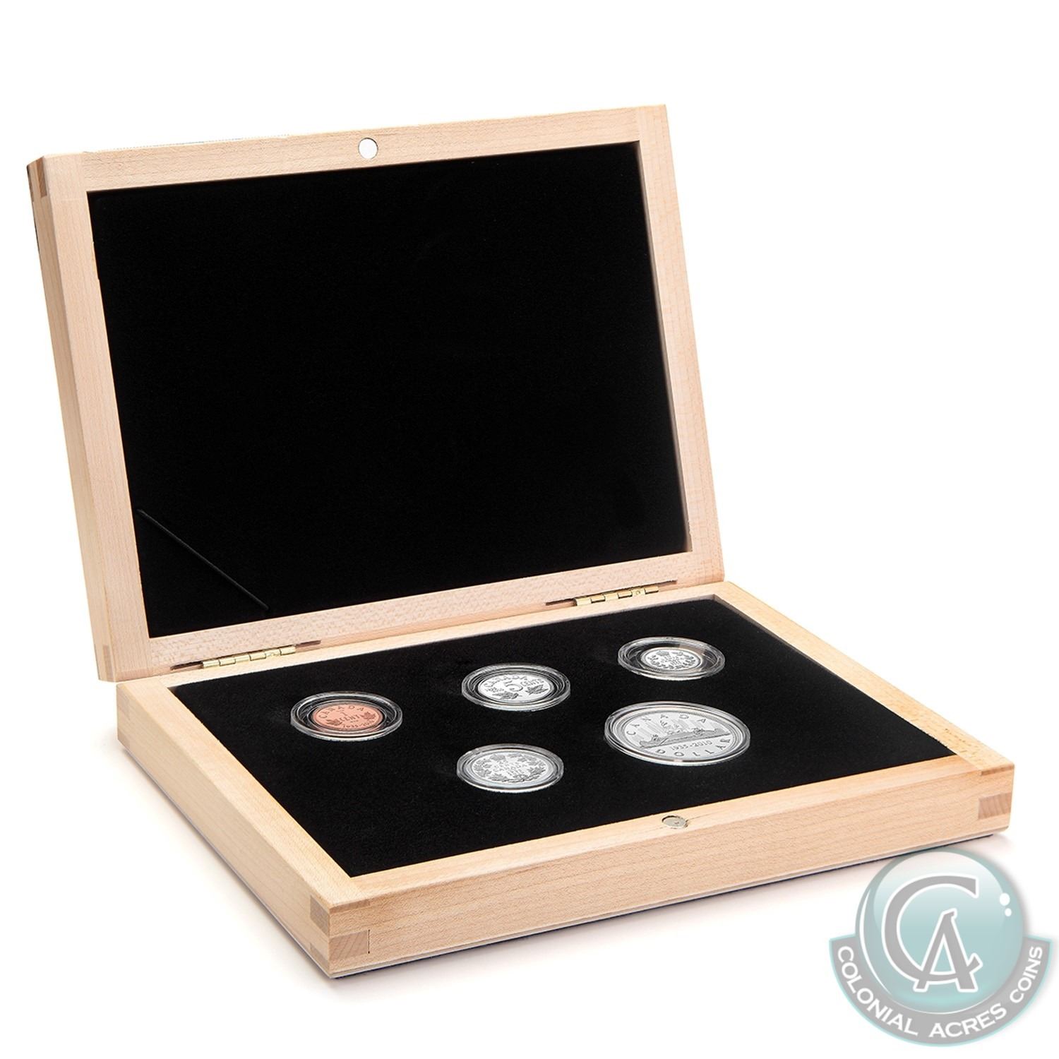 2010 Canada's Voyageur Dollar Anniversary Limited Edition 5-coin Proof Set (Missing outer sleeve & 5-cent and 10-cent coin are lightly toned)