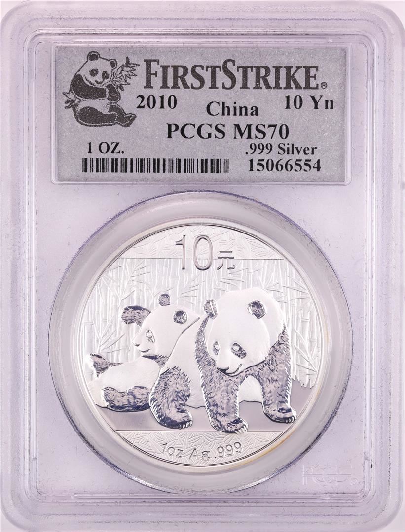 One 2010 China 10 Yuan Silver Panda Coin PCGS MS70 First Strike. PCGS Graded.