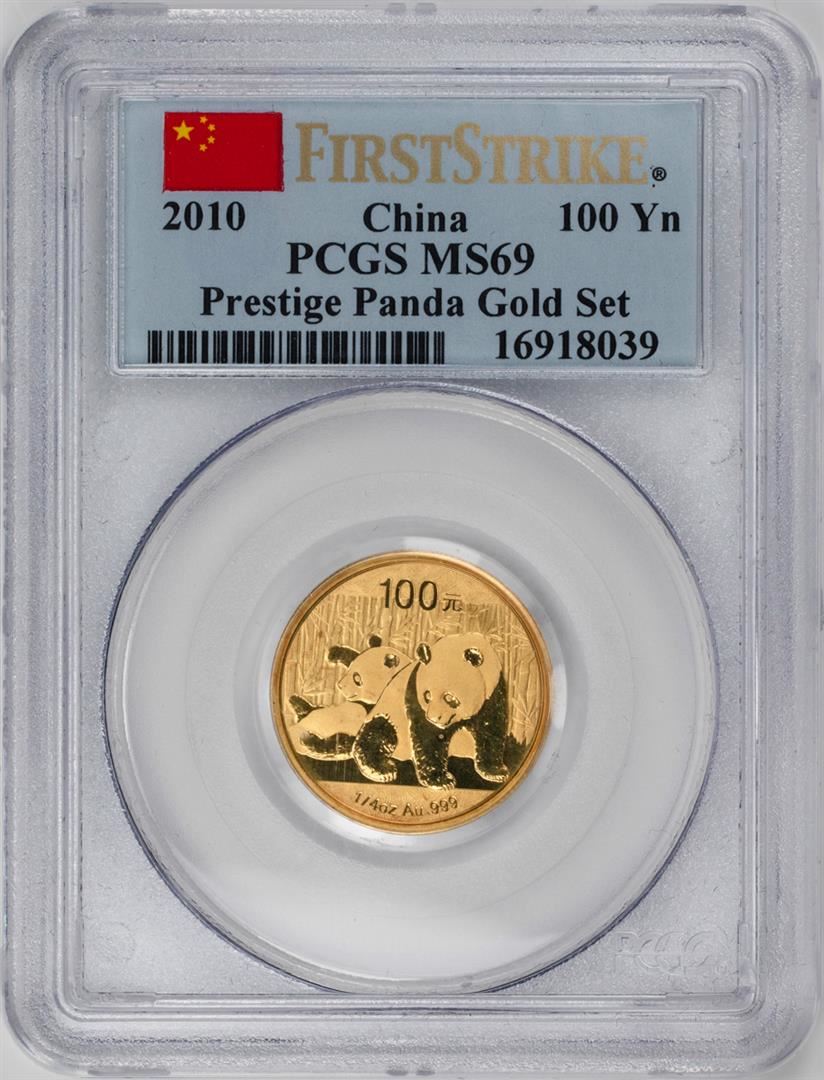 One 2010 China 100 Yuan Panda Gold Coin PCGS MS69 First Strike. PCGS Graded.