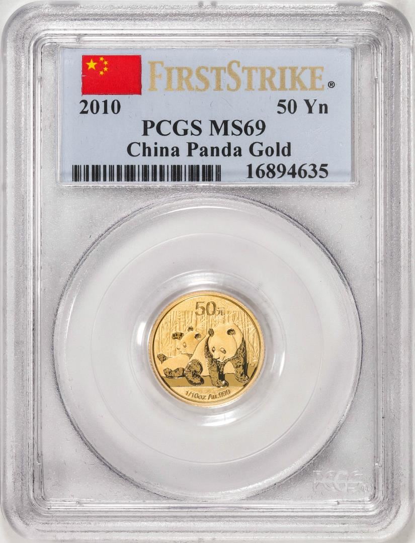 One 2010 China 50 Yuan Panda Gold Coin PCGS MS69 First Strike. PCGS Graded.