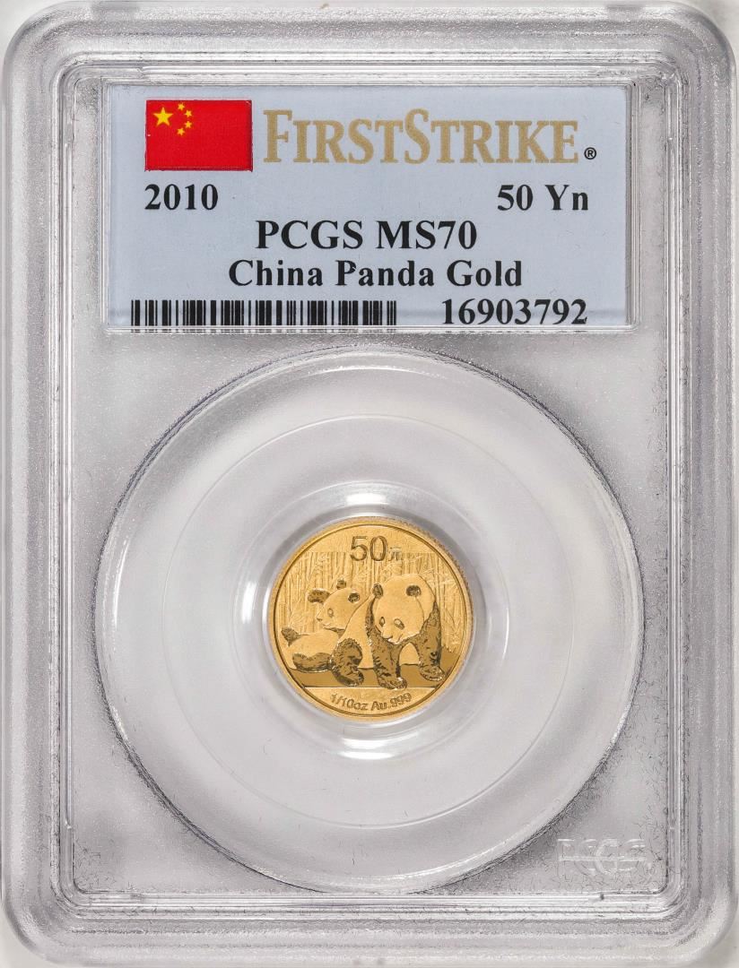 One 2010 China 50 Yuan Panda Gold Coin PCGS MS70 First Strike. PCGS Graded.