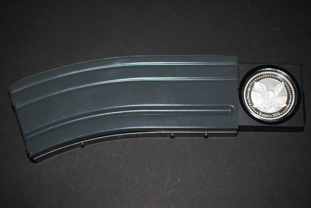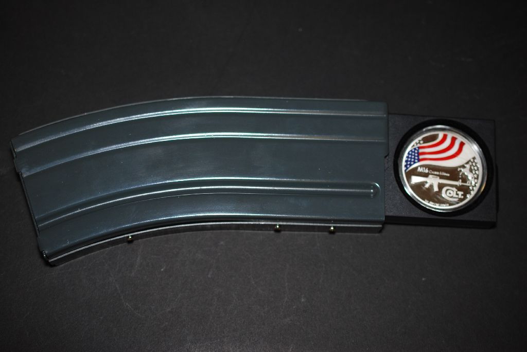 2010 Colt Colorized Commemorative Silver Round M16 Caliber 5.56mm In Magazine Display Case With COA Included; .999 Silver 1 Oz. Proof; The New Zealand Mint; EST. $100-125