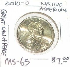 2010-D NATIVE AMERICAN DOLLAR *GREAT LAW OF PEACE* RED BOOK VALUE IS $7.00 *RARE MS-65 HIGH GRADE*!! ***Coin, Currency & All Items Listed in this auction - Grades, Conditions and Values are not Safe Deposit Coins LLC Responsibilty. Grades, Condition and Values are determined by Consigner(s) & Buyers ONLY***