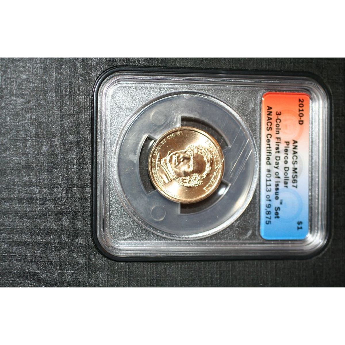 2010-D Pierce Dollar ANACS Graded MS67 3-Coin First Day of Issue