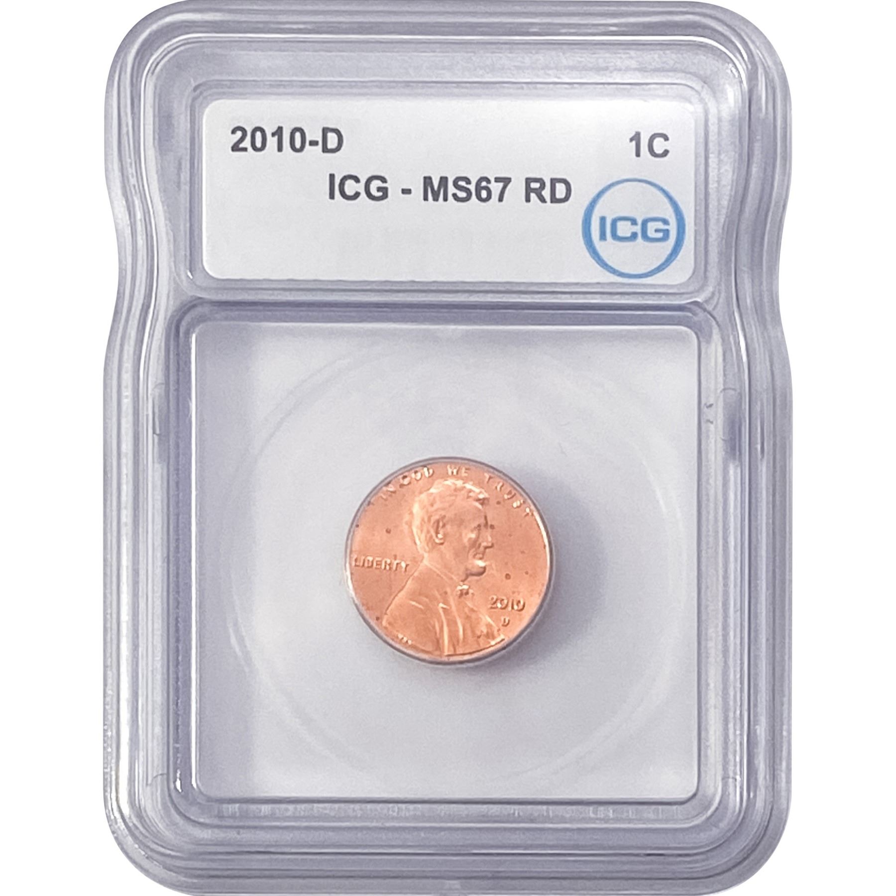2010-D Union Shield Lincoln Cent ICG MS67 RD