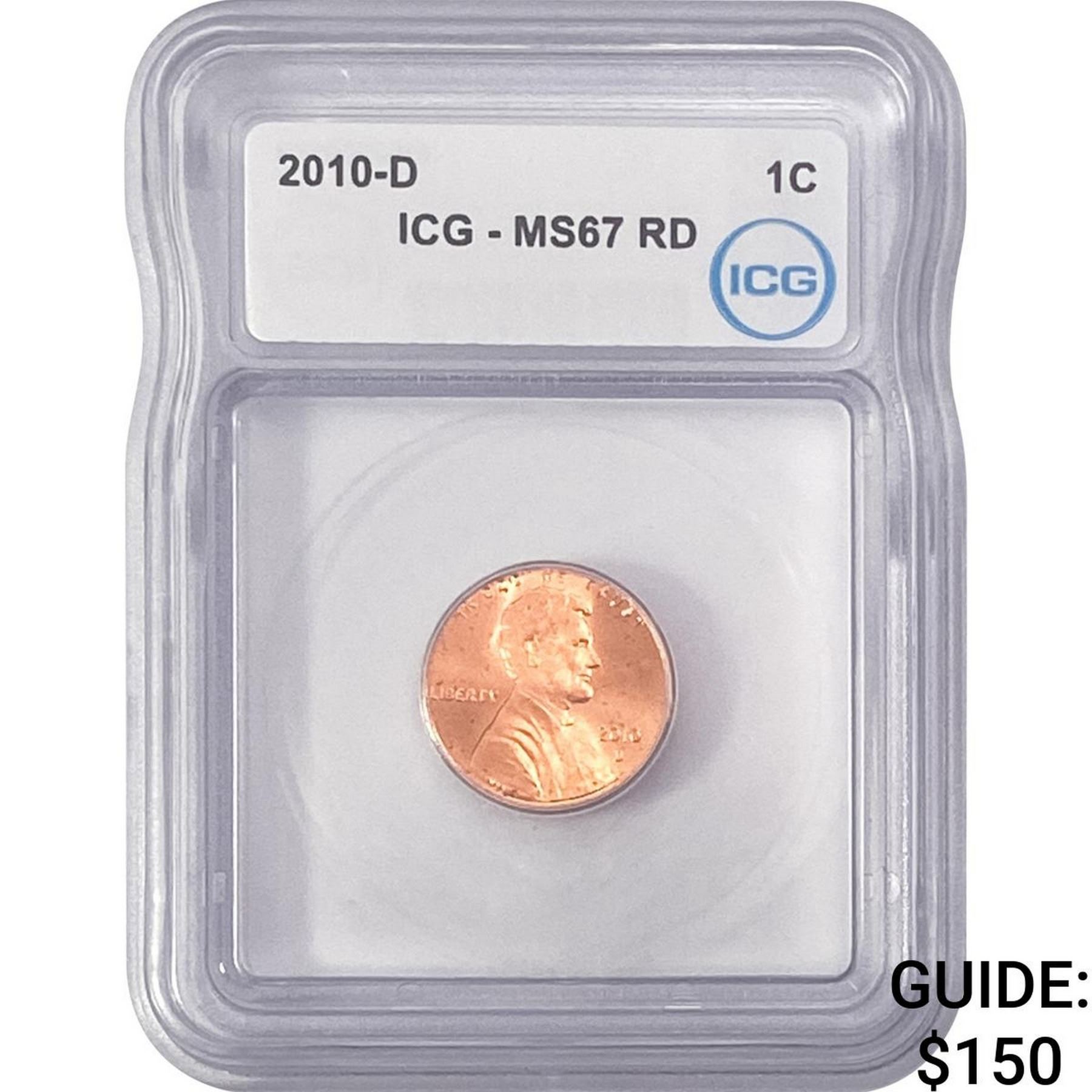 2010-D Union Shield Lincoln Cent ICG MS67 RD