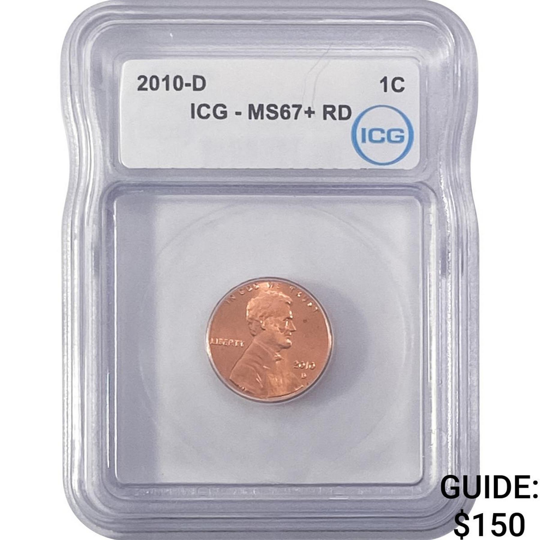 2010-D Union Shield Lincoln Cent ICG MS67+ RD