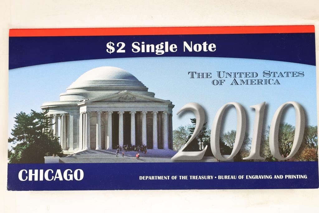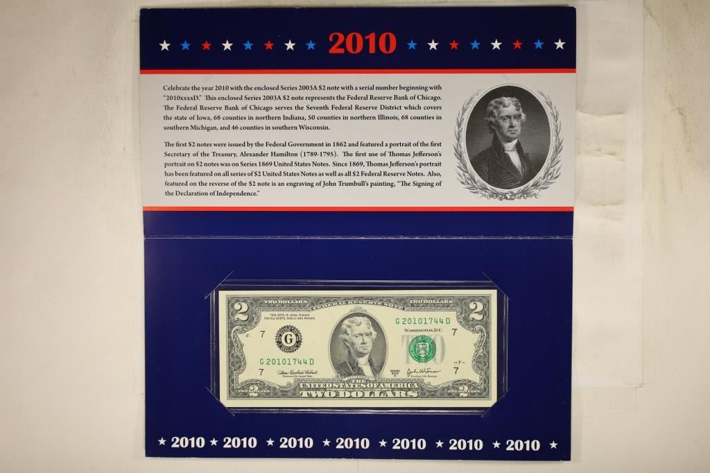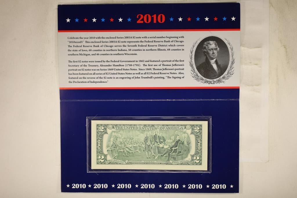 FRN CRISP UNC BILL WITH THE SERIAL NUMBER STARTING 2010, ORIGINAL BEP PACKAGING