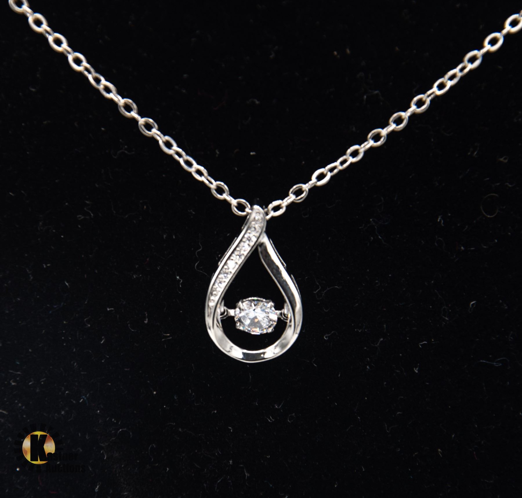 ROUND BRILLIANT CUT MOISSANITE STONE VVS D COLOR SET IN CENTER SURROUNDED BY TEAR DROP WITH ROUND CZ’S SET IN 925 SILVER PENDANT COMES WITH GIFT BOX