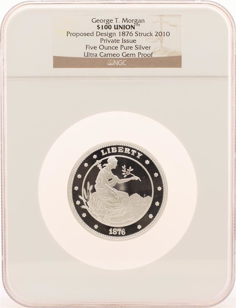 One 2010 George T. Morgan $100 Private Issue 5 oz Silver Coin NGC Ultra Cameo Gem Proof. NGC Certified.