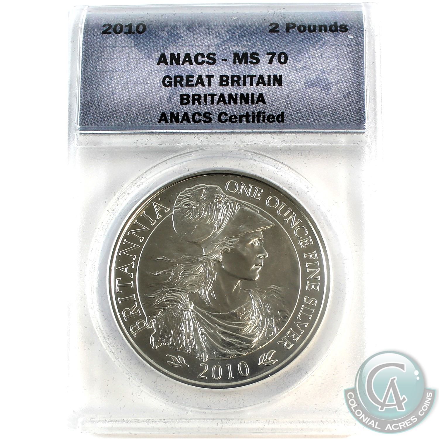 2010 Great Britain 2-Pound Britannia ANACS Certified MS-70 (Tax Exempt)