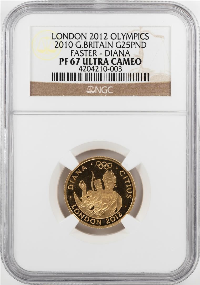 One 2010 Great Britain 25 Pounds Olympics Commemorative Gold Coin NGC PF67 Ultra Cameo. NGC Certified.