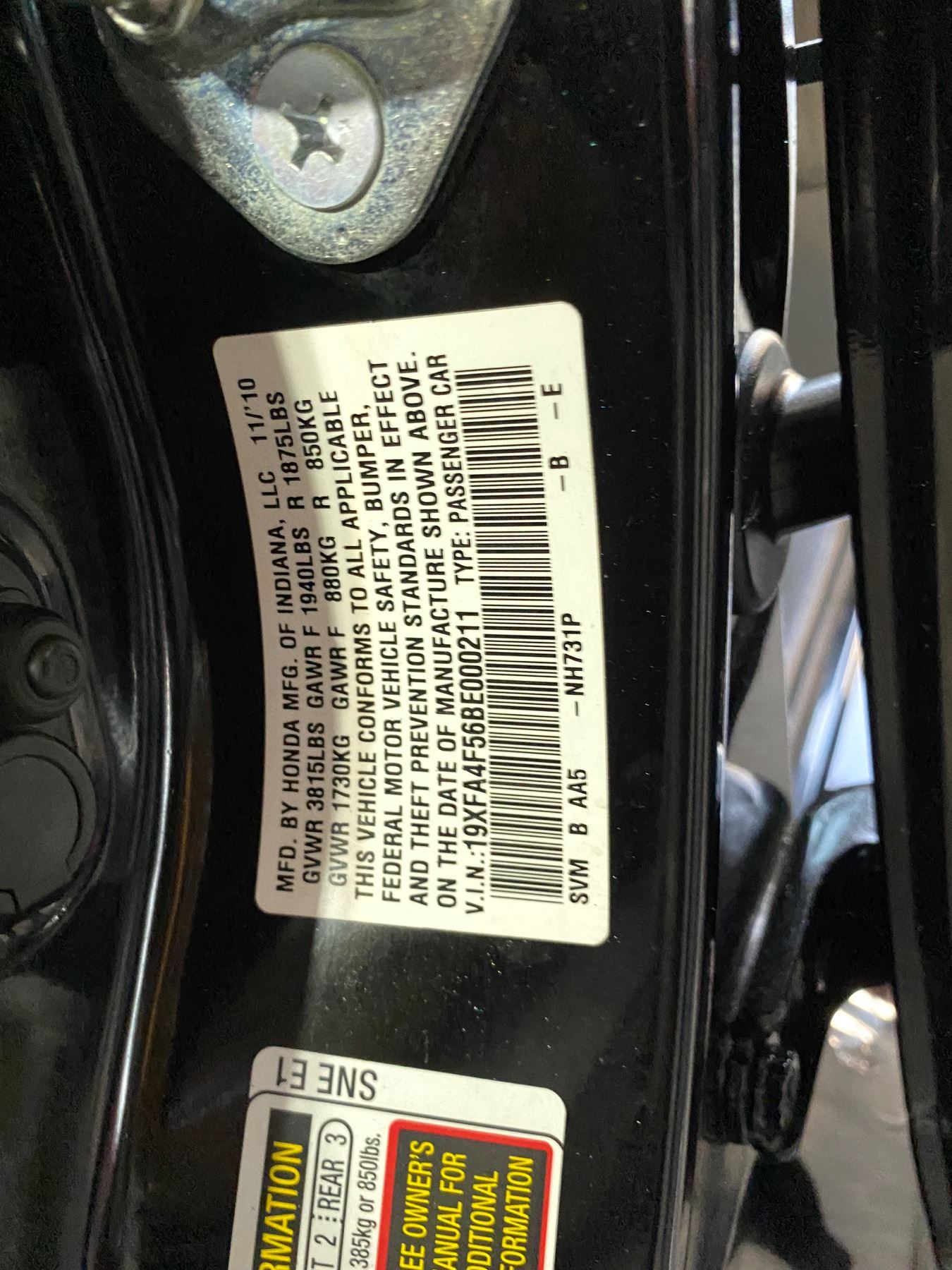VIN:19XFA4F56BE00211