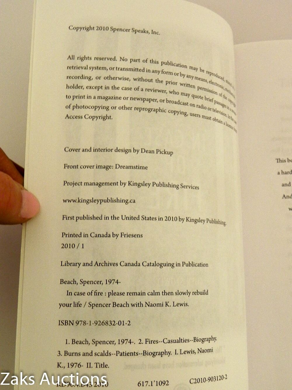 2010 IN CASE OF FIRE - SPENCER BEACH WITH NAOMI K. LEWIS. SOFTCOVER