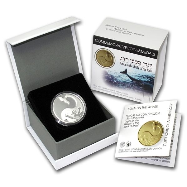 2010 Israel Jonah in Whale Proof-like Silver 1 NIS (w/ **|**|** 2010 Israel Jonah in Whale Proof-like Silver 1 NIS (w/ box & coa) ; MSRP: $0
