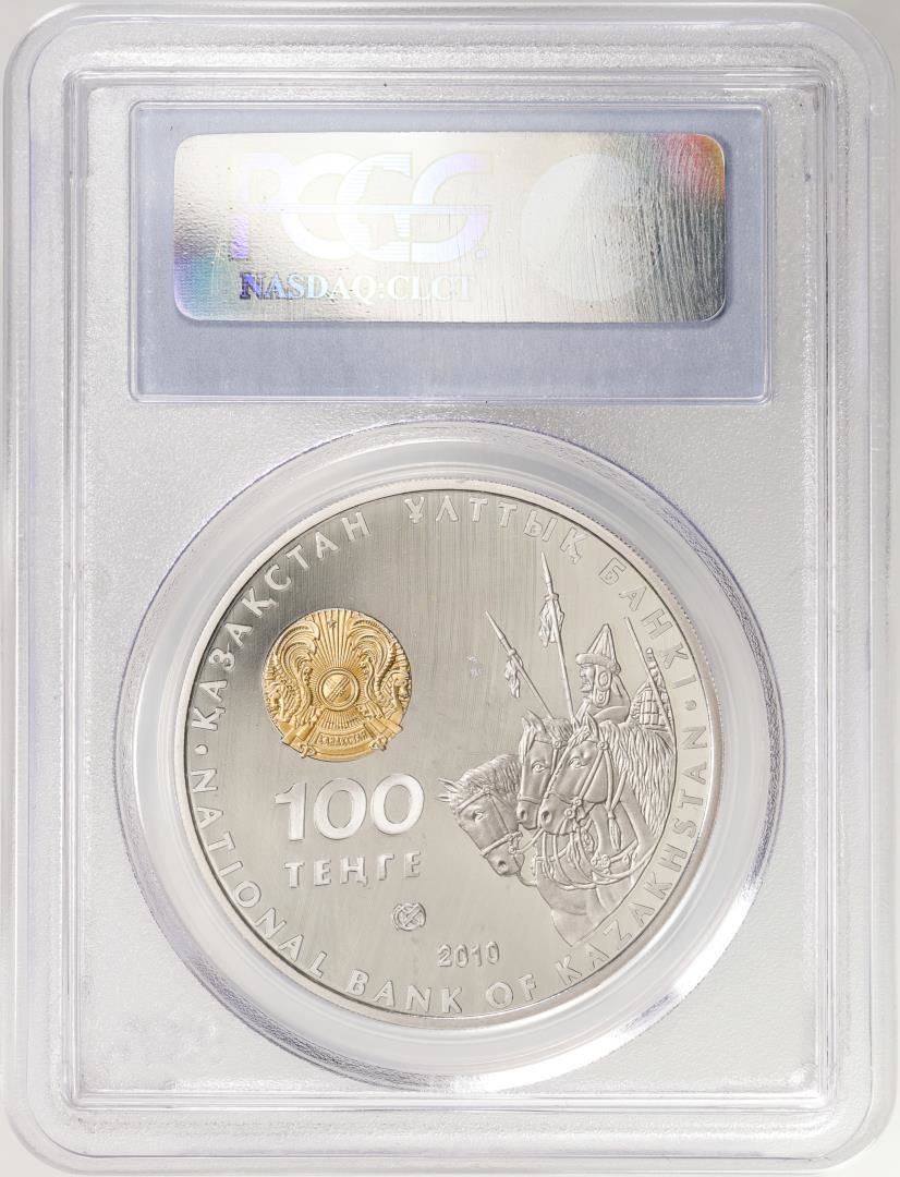 One 2010 Kazakhstan 100 Tenge Proof Tomiris Silver Coin PCGS PR70DCAM. PCGS Graded.