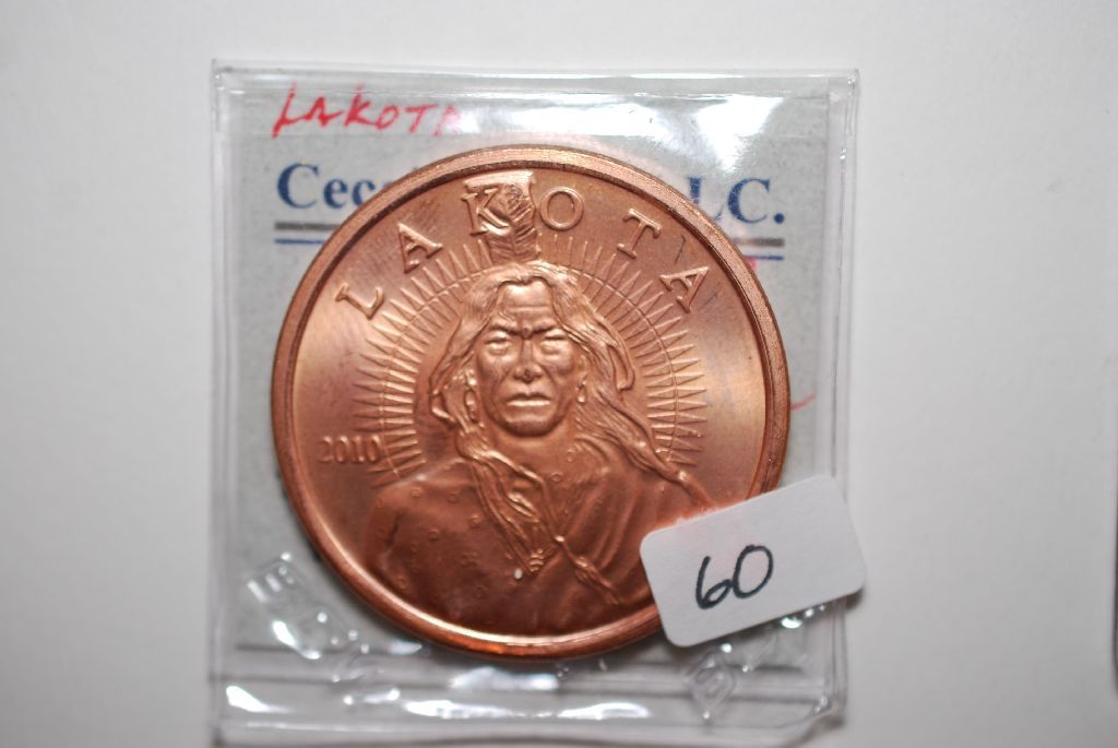 2010 Lakota Copper Round; .999 Fine Copper 1 Oz.; EST. $3-5