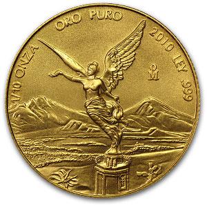 2010 Mo 1/10th OZ GOLD MEXICO LIBERTAD-CH BU+