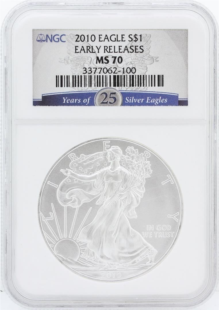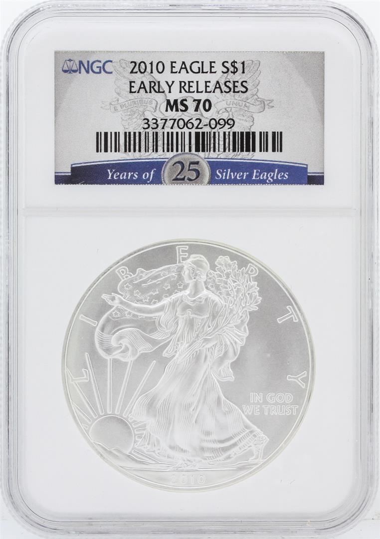 2010 NGC MS70 Early Release American Silver Eagle Dollar Coin Set Lot of 2. NGC Certified.