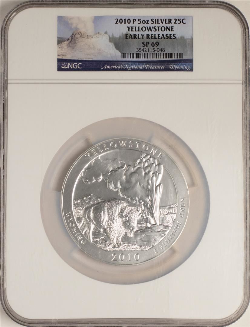 One 2010-P America the Beautiful Yellowstone 5 Ounce Silver Coin NGC SP69 Early Releases. NGC Certified.