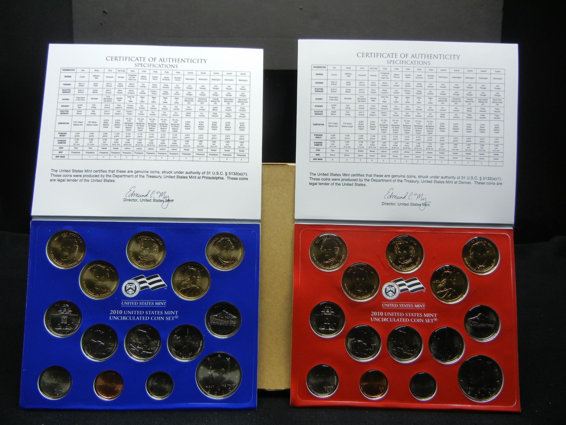 2010 P/D US Mint Set. (28) coins including (10) parks quarters, (8) Presidential dollars, and (2) Sacajawea dollars. GEM BU.
