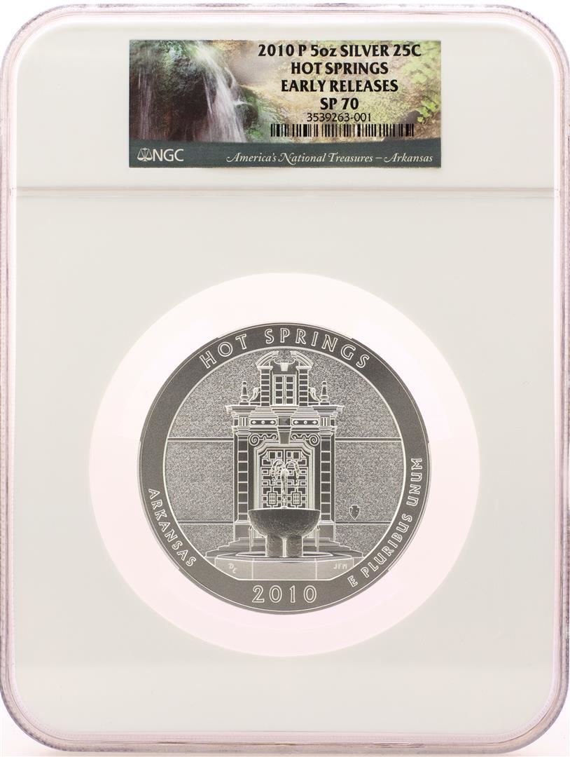 One 2010-P Hot Springs 5oz Silver Quarter Coin NGC SP70 Early Releases. NGC Certified.