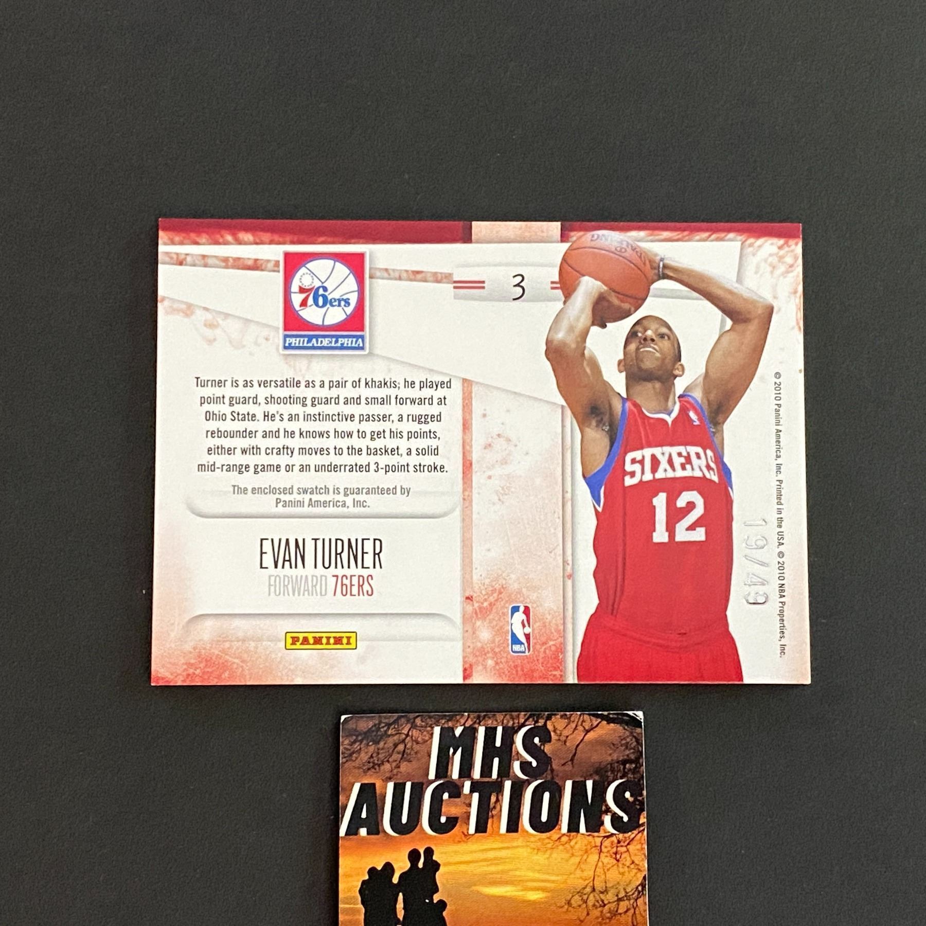 2010 PANINI EVAN TURNER PATCH CARD #19/49 ONLY 49 MADE