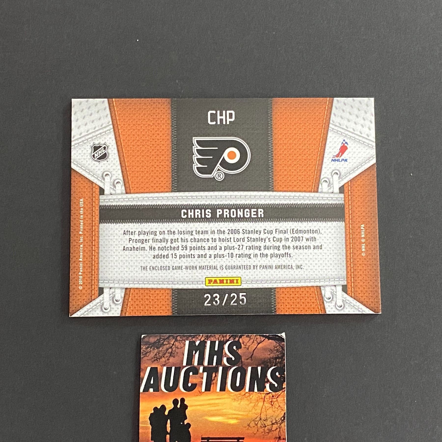 2010 PANINI HOCKEY CHRIS PRONGER #23/25 JERSEY CARD ONLY 25 MADE