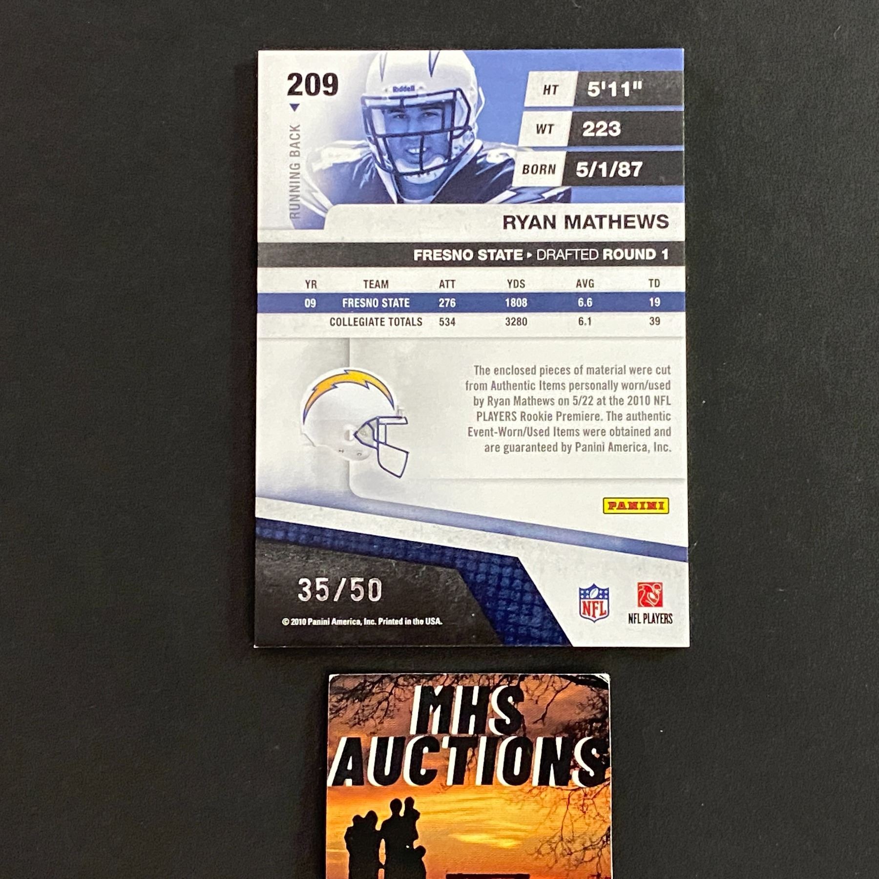 2010 PANINI RYAN MATHEWS PATCH CARD #35/50 ONLY 50 MADE