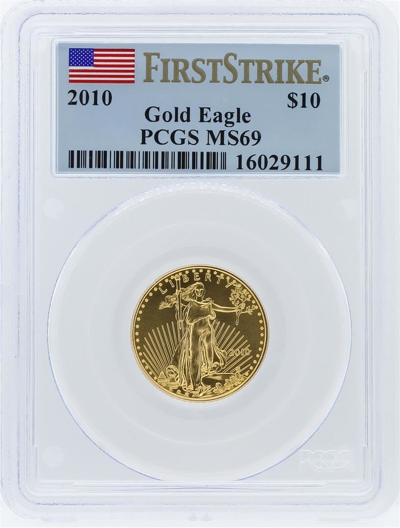 One 2010 PCGS MS69 First Strike $10 American Eagle Gold Bullion Coin. 1/4 oz. pure gold. PCGS Certified.