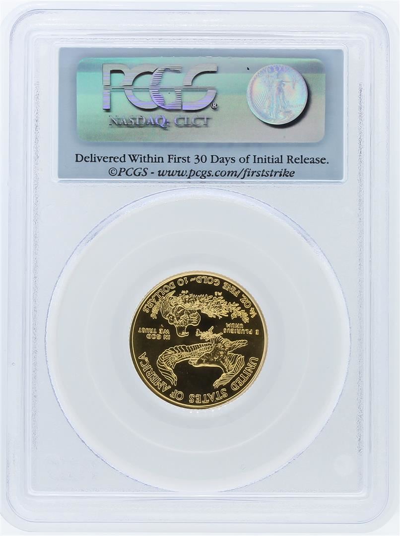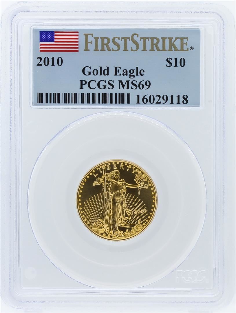 One 2010 PCGS MS69 First Strike $10 American Eagle Gold Bullion Coin. 1/4 oz. pure gold. PCGS Certified.