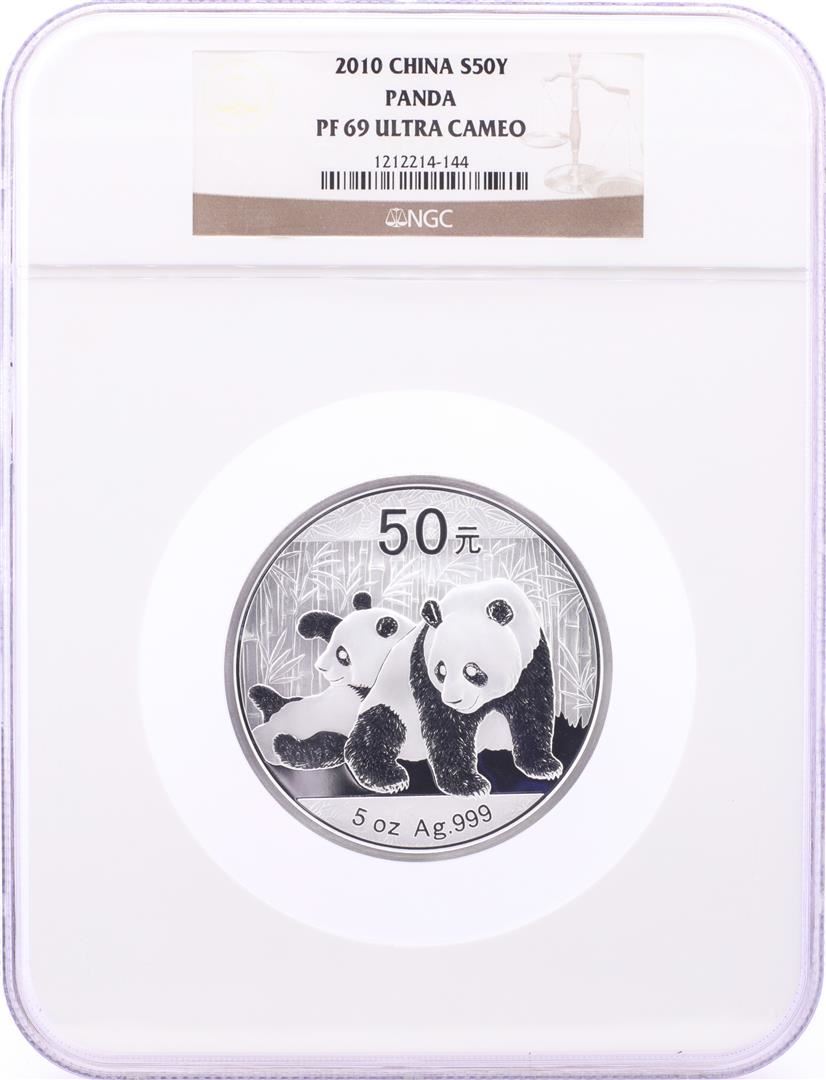 One 2010 Proof China 50 Yuan 5oz Silver Panda Coin NGC PF69 Ultra Cameo.