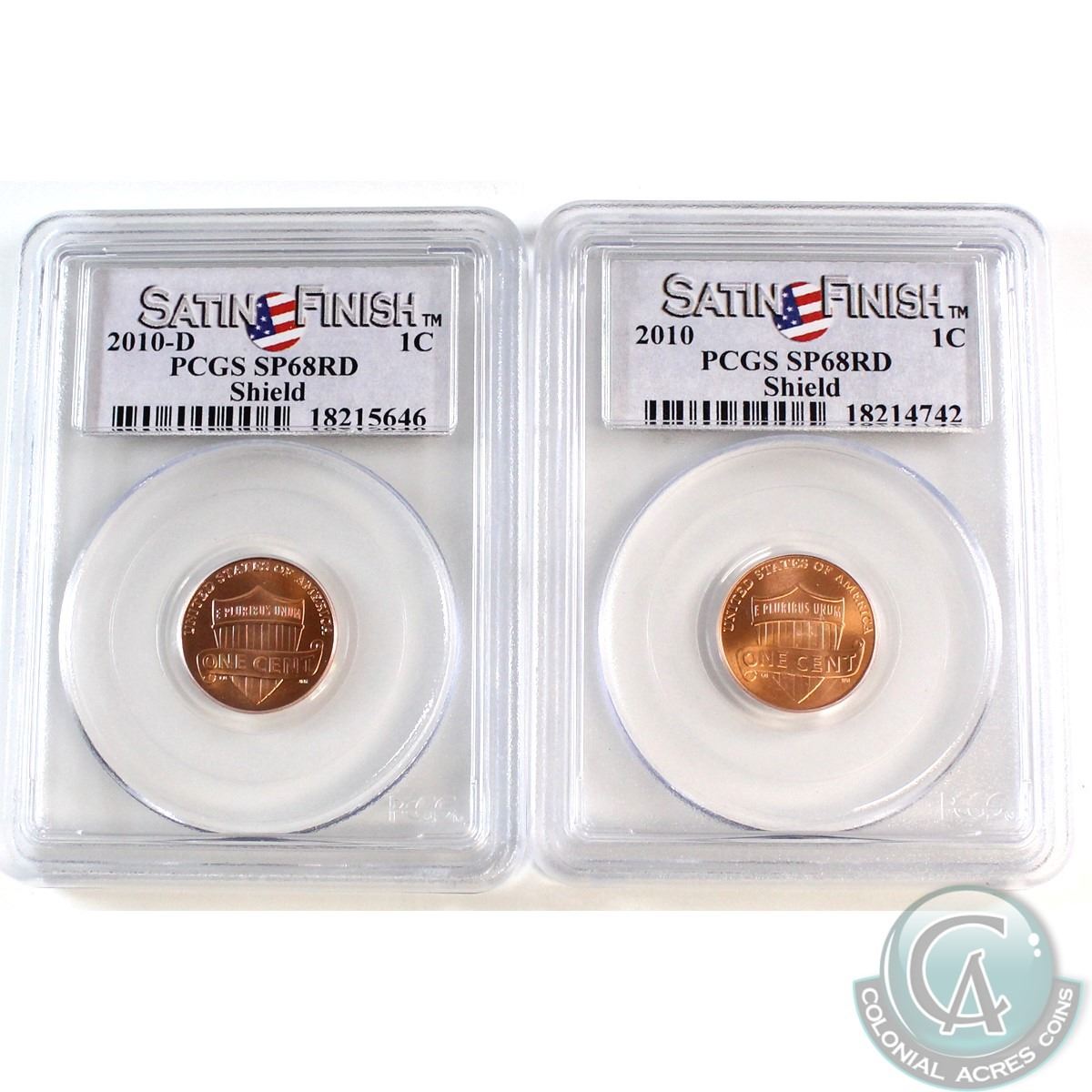 2010 Regular & 2010-D USA Shield Cents PCGS Certified SP-68 Red. 2pcs