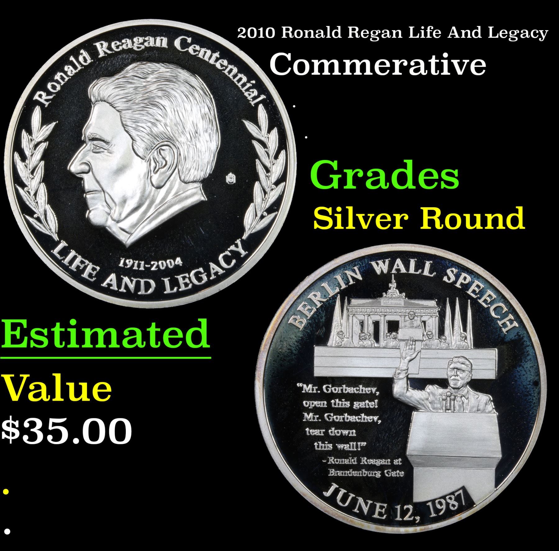 2010 Ronald Regan Life And Legacy . . Silver Round Rounds Grades Silver Round. Life Of Ronal Regan Commerative Belin Wall Speech, American Mint, Limited Edition