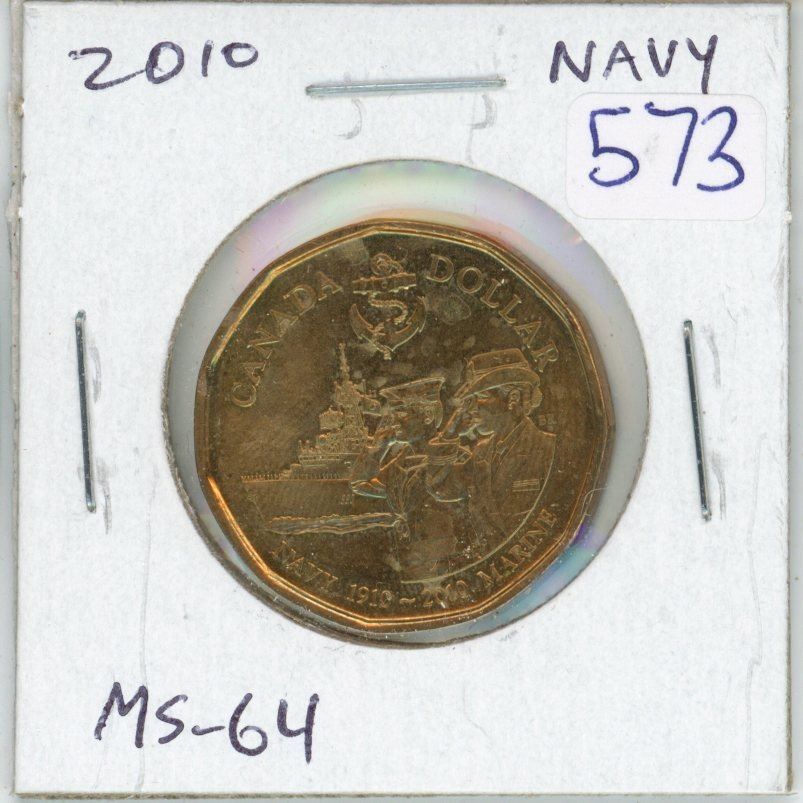 2010 Royal Canadian Navy Centennial Loonie. MS-64 from an original roll.