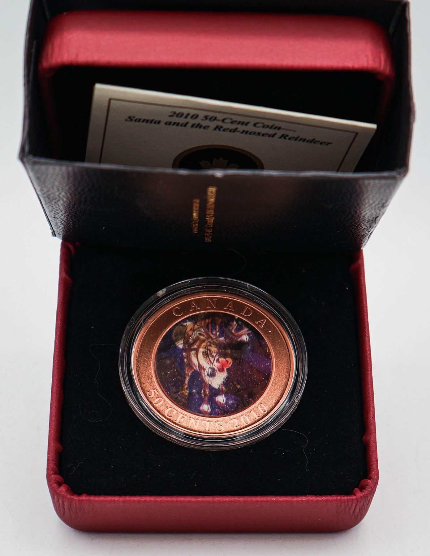 2010 SANTA & RED NOSE REINDEER CANADIAN 50C COIN