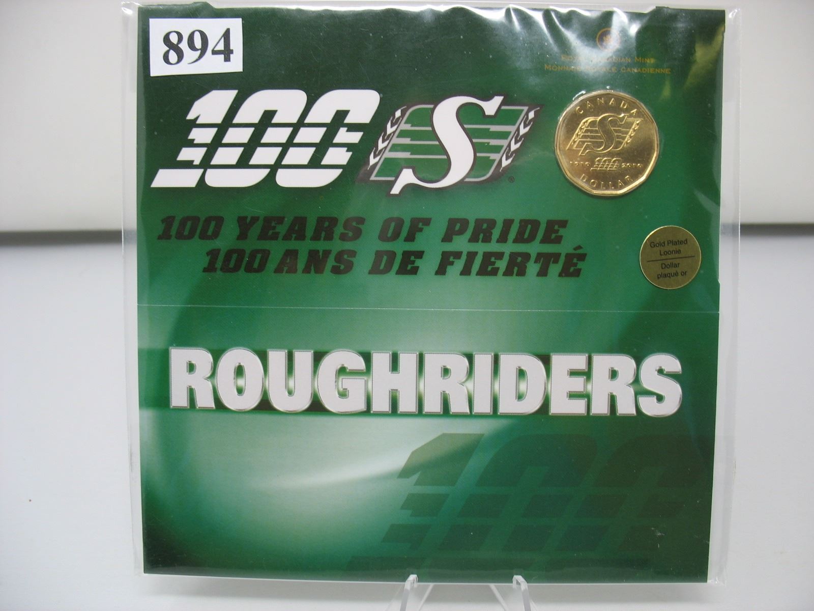 2010 SASKATCHEWAN ROUGHRIDER - GOLD PLATED LOONIE as ISSUED